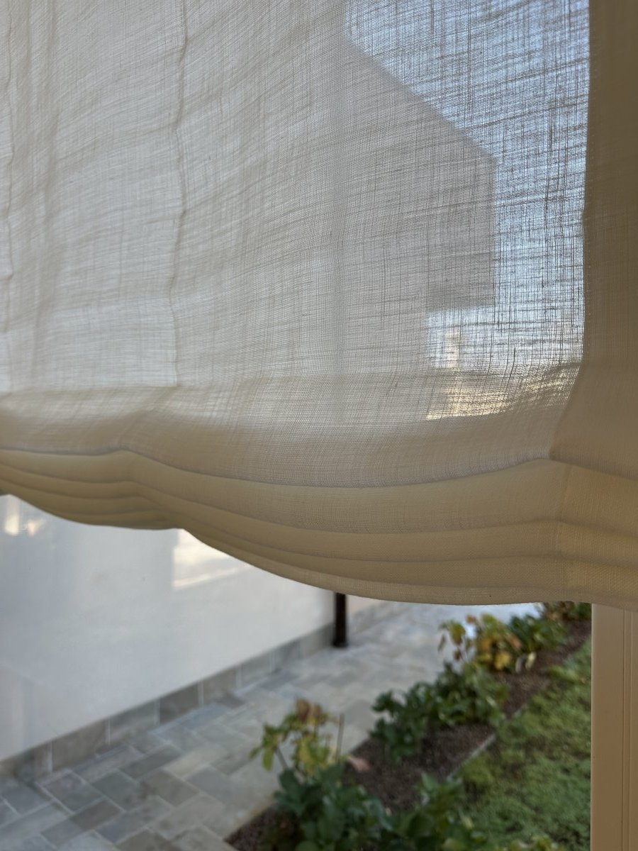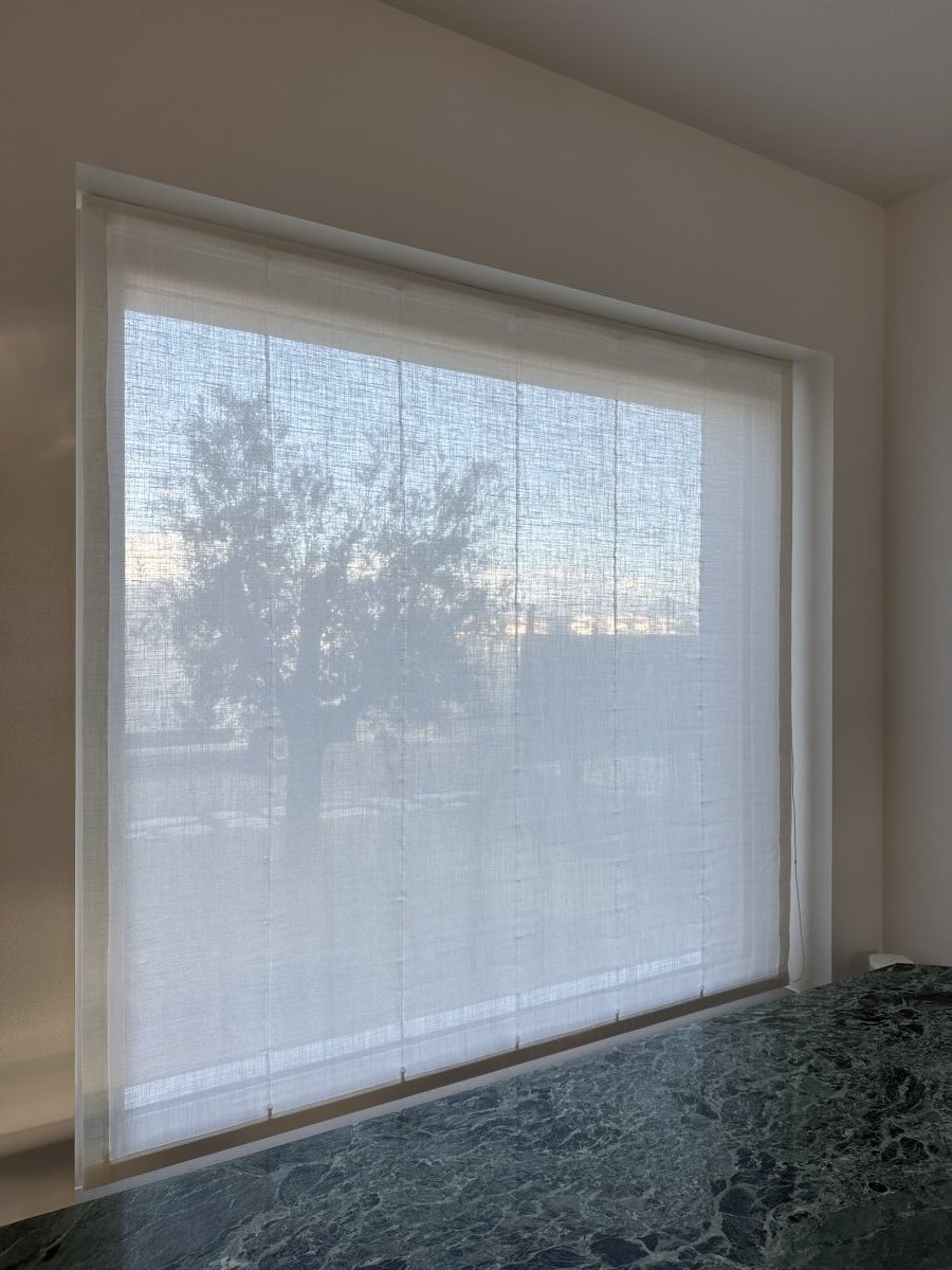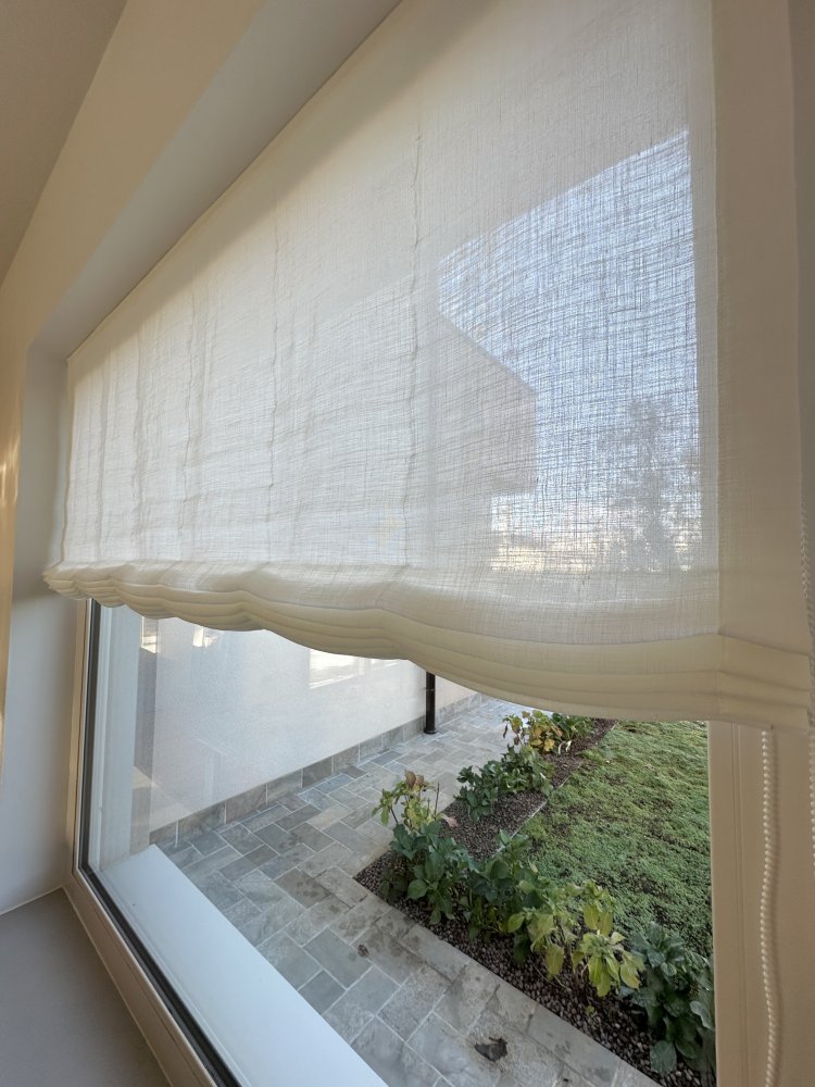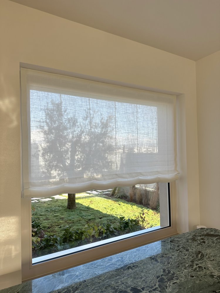 La meraviglia di un pacchetto a soffitto per vestire una vetrata. Appena abbiamo visto questa vetrata abbiamo subito pensato alla tenda a pacchetto, nella sua semplicità e la tenda perfetta per queste situazioni.