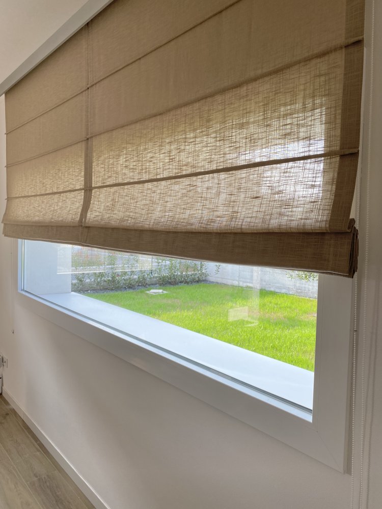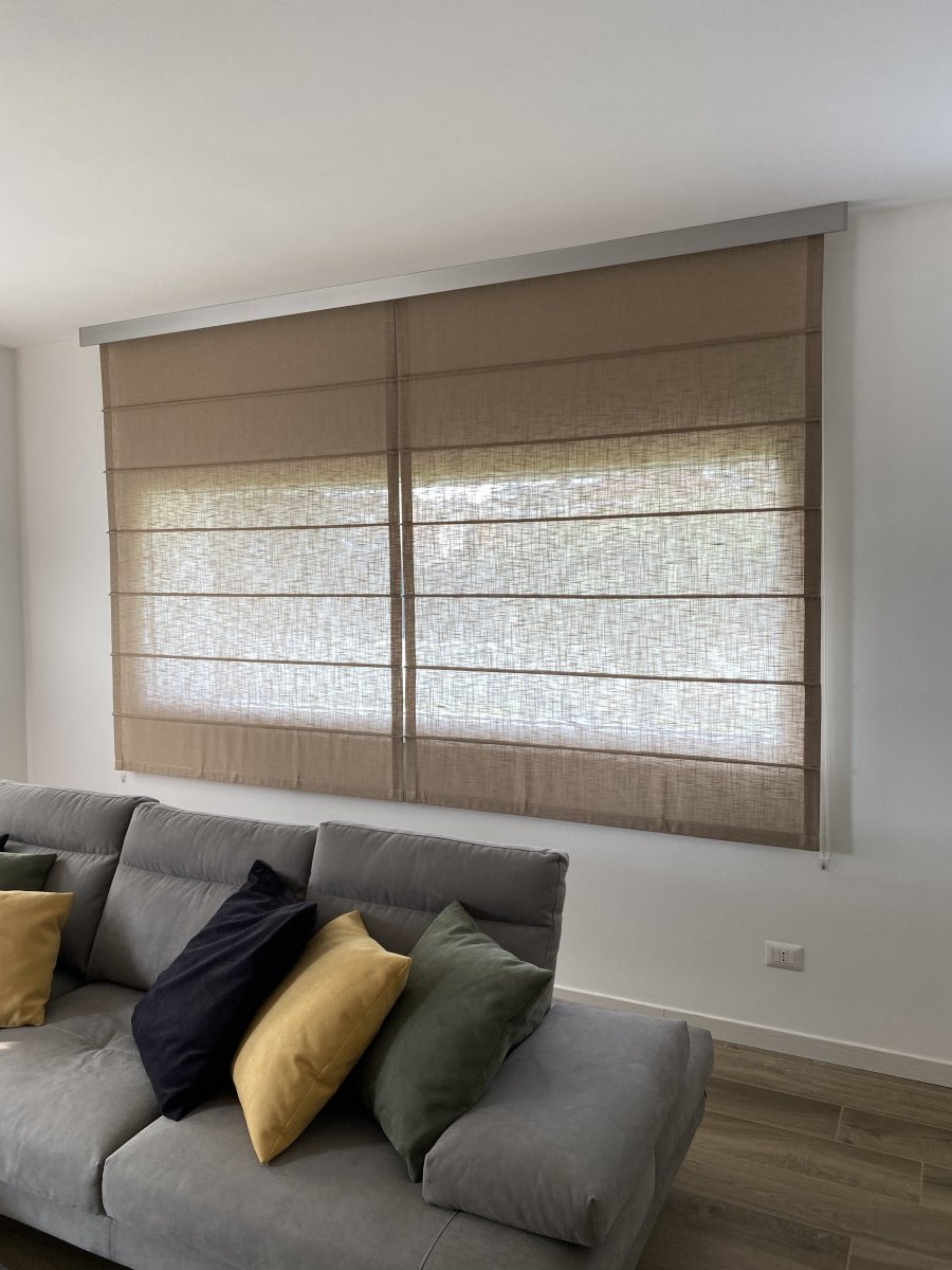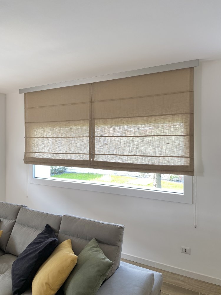 Elegante e semplice, perfetto per chi vuole coprire tutto il serramento o i casettoni delle tapparelle. In questo caso lo abbiamo fatto steccato, le stecche si sfilano facilmente per il lavaggio.