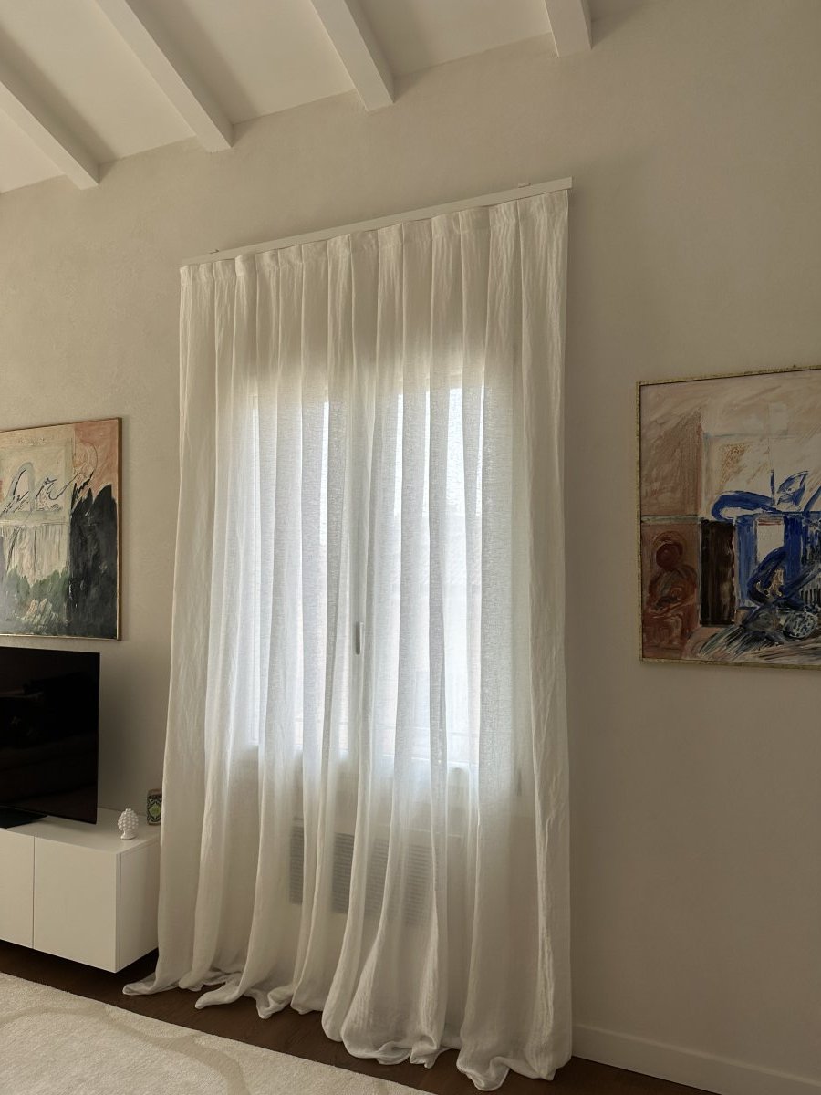Per questo fantastico appartamento in centro a Verona abbiamo realizzato delle tende morbide utilizzando un tessuto in lino 100%. Le caratteristiche principali di questa realizazzione sono: